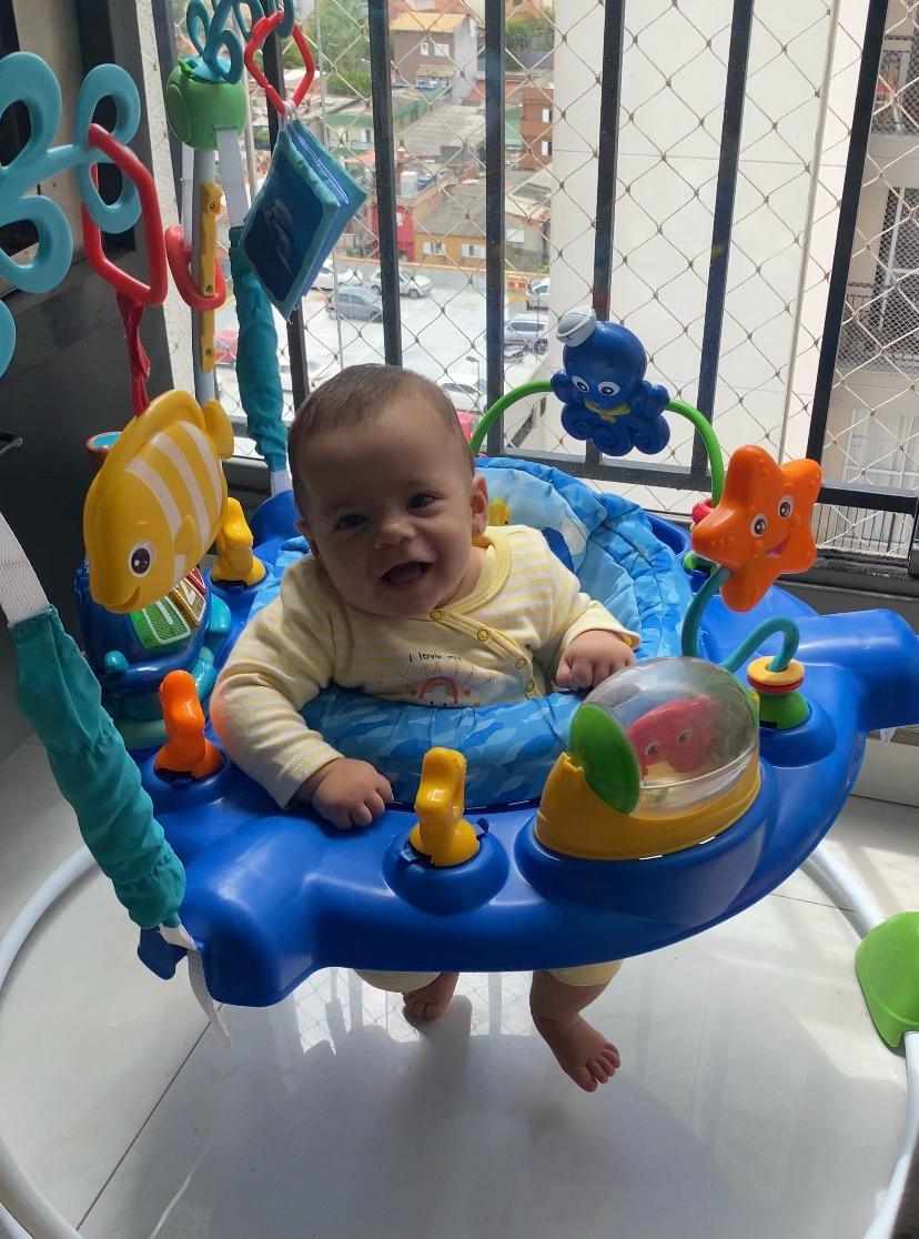 É muito fácil alugar um Jumperoo Descoberta do Oceano no Baú do Bebê
