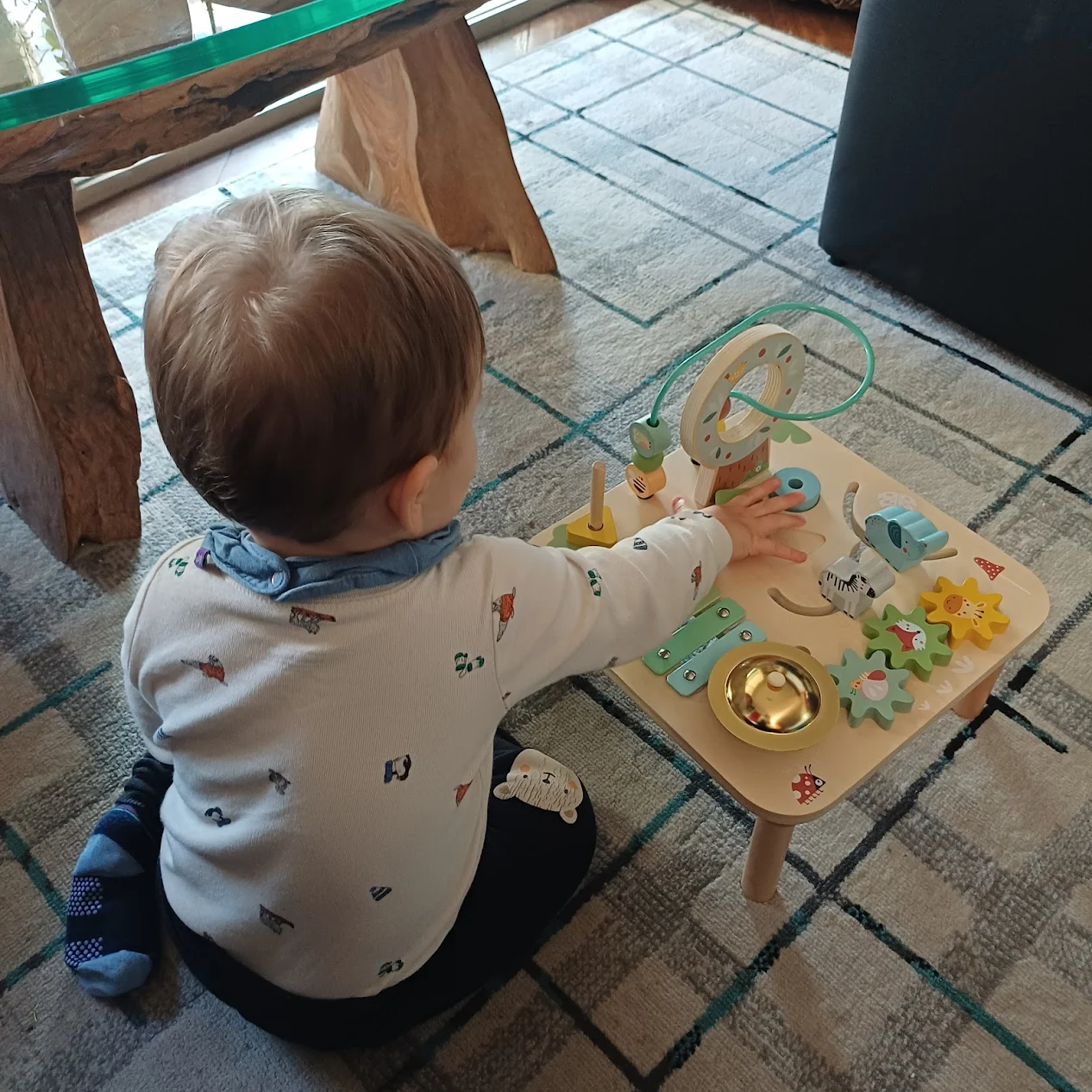 - Altura confortável para que a criança explore as atividades em pé ou sentada.