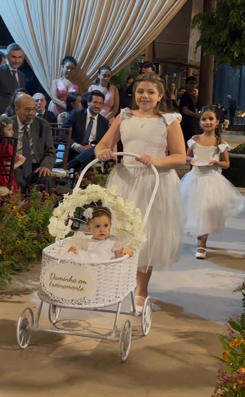 O Carrinho Cerimônia Bebê Casamento – DCabana Artesanatos e Decorações é a escolha perfeita para casais que sonham com uma entrada inesquecível, segura e cheia de ternura.